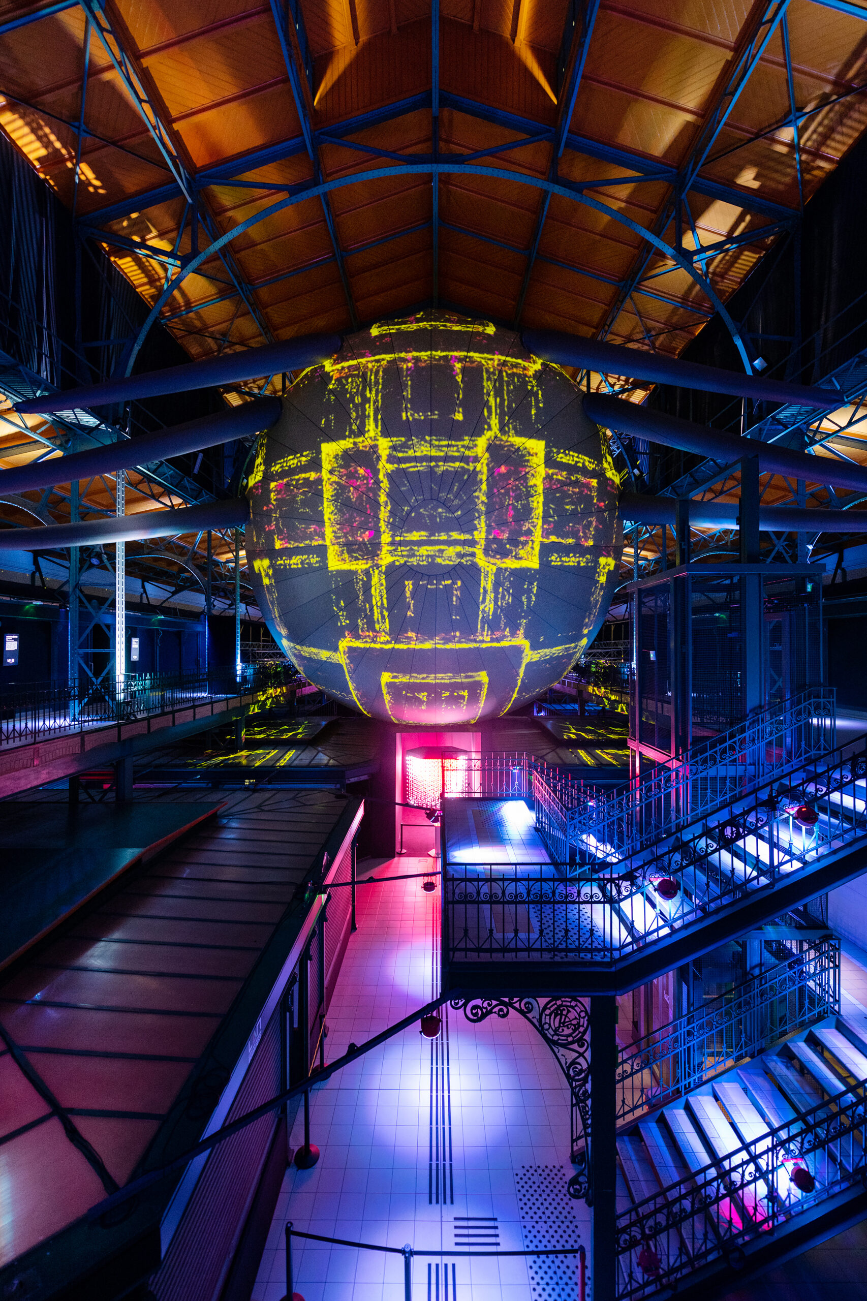 The museum is housed in the vast, 2,000-square-meter historic building of the former Downtown Market, where vendor stalls have been transformed into spaces for technology-driven, progressive art. At the center of the hall stands Europe’s largest projection environment — a zeppelin — inviting visitors inside to be surrounded by the museum’s most spectacular immersive projections.
