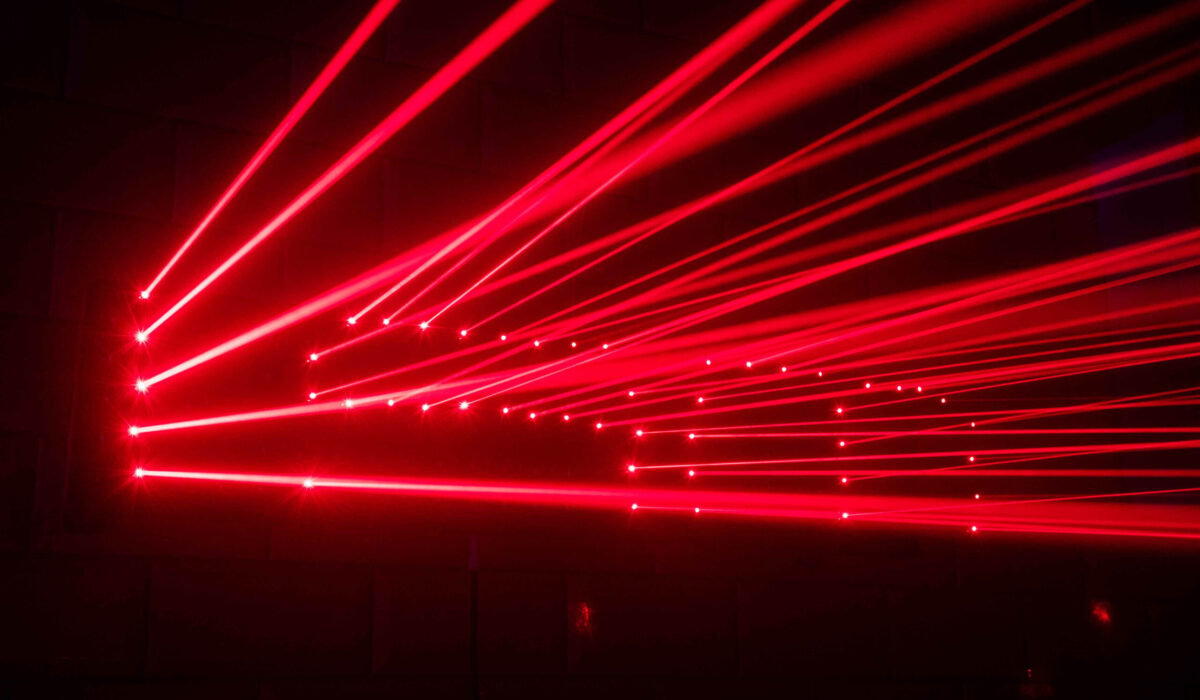 The site- and language-specific work of János Borsos addresses problems of identity philosophy. As in his 2009 work The Holy Trinity Model, which is a precursor to the installation on view here, the artist addresses the viewer through his distinctive, semiotically inspired visual language in a dramatic but contemplative way. Borsos uses laser beams, text, and space as a means to present a metaphysical revelation as both text and image. In this work, which points to conceptual issues of self-identity, two personal pronouns – the English “I am” and “you” – each become one another’s mirror image, interchangeable and substitutable through being drawn by the same laser beam on two displays of the same number of points of light, facing each other. Beyond being an ingenious visual pun, the installation is intended to be a paraphrase of an aesthetic concept by Alan Watts, a preacher of modern perpetualism: “The Universe is a multidimensional matrix projection of your soul and each person you meet is a different version of you awakening from the illusion of separation.”