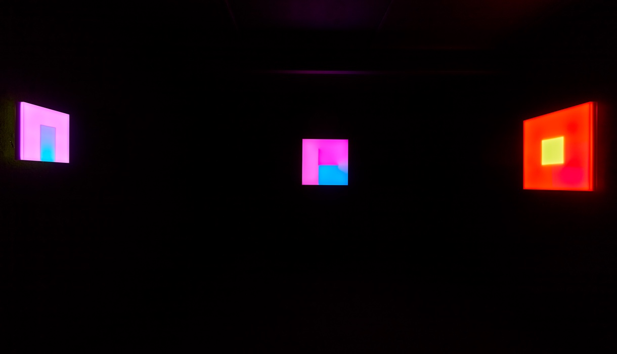 Brian Eno, the visionary artist and composer known as the father of ambient music, defies traditional boundaries by seamlessly blending visual art and music. His mesmerising LED light installations invite viewers into a realm of serene contemplation where the colours and hues of abstract forms slowly shift and evolve over time. Through the gentle interplay of colours and shapes, Eno creates an immersive environment that encourages a meditative state, allowing participants to become lost in the gradual unfolding of visual harmonies. These slowly changing light compositions challenge our perception of time, offer a respite from the frenetic pace of everyday life and encourage a deep, almost trance-like engagement with the artwork.