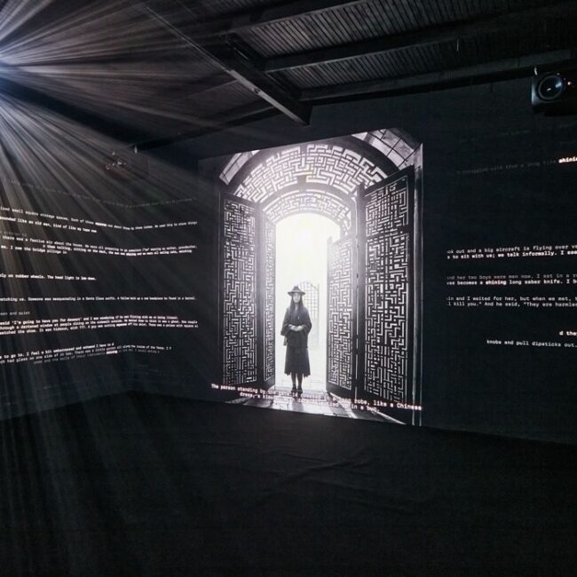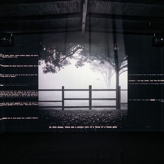 The work transforms into a collective experience the dreams of volunteers who participated in the research at the University of Bologna and the University of California Santa Cruz. Selected from 28,748 dreams, the plots flow one into the other as a series of short stories, tracing the actual cadence of NREM and REM dreams present over the course of a night’s sleep. This continuous synthetic stream of dreams finds its final aesthetics through the close collaboration between human and artificial intelligence: the sequences are artificially generated by a machine learning system that translates the text of dreams into a series of subsequent hallucinations that bring to life the characters, objects and landscapes described. Onirica () accentuates the tension created by the interpretation and translation of a purely human experience, the dream, through the eyes of new technologies. Inserting itself within an increasingly relevant ethical debate, the work aims to address from an unprecedented and exploratory point of view the relationship between a purely human sensibility and the creative capacity of artificial intelligence systems: to discover their potentialities and limitations, to stimulate in the viewer a critical and conscious idea about the possible impact of these technologies on society and on the perception of ourselves.
