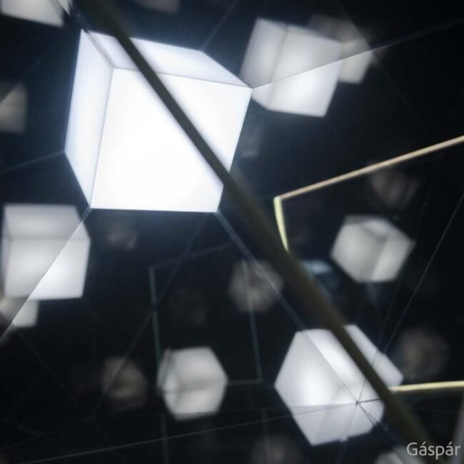 The focus of Gáspár Battha’s (1988, Budapest) creative practice is his study of the interface between art and science. Synthesizing his mathematically based pragmatic thinking and his experiments with optical illusions and visual research from geometric form construction he often creates light installations on an architectural scale.