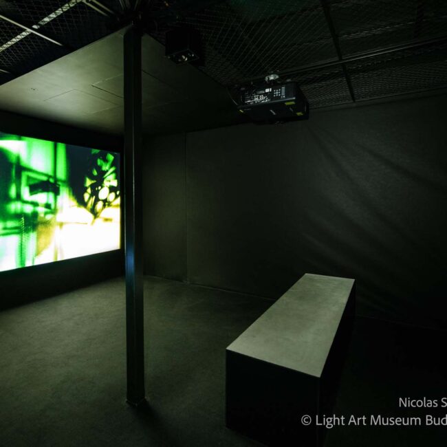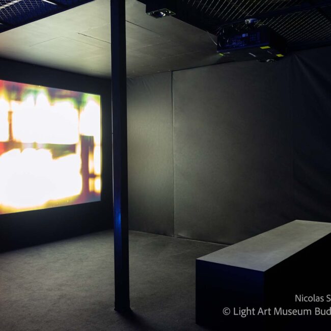 Born in Kalocsa, Hungary, Nicolas Schöffer worked in Paris from 1936 until his death and dedicated his life to creating an artistic medium that opened up the static three-dimensional sculptural form to the fourth dimension of time and movement. Drawing on the theories of circular causality, feedback, the self-regulation of open and closed systems, and information processing, he laid the foundations for cybernetic art, which he later sought to extend to the environment as an aesthetic experience for the organization of urban life. In 1948 Schöffer began to work on the concept of spatial dynamics, which made sculpture part of the virtual space, and from 1957 he constructed ‘luminodynamic’ sculptures (integrating light, music, and film) based on the idea of visually melting and evaporating the environment. From 1959 he assigned time and duration as starting points for his kinetic sculptures, which resulted in so-called „chronodynamic” works composed of parts that rotated on top of each other and emitted light according to a specific rhythm. Schöffer’s film Spatiodynamisme was shown at the 1958 World Exhibition in Brussels, and shortly afterward, with the support of the Philips company, he made the film shown here, which he created as a documentation of his experiments in light dynamics. The viewer is almost hypnotized by the incessant transformations of abstract color forms that constantly burst onto the screen, and the magic of the lyrical play of light, conceived as a chromatic vision, was even enhanced by the fact that Schöffer commissioned a pioneer of the fusion of jazz and electronic music, Tom Dissevelt, to accompany his optical play with the Dutch musician’s composition Orbit Aurora. Around the same time, Schöffer also created for Philips what is believed to be the world’s first cybernetic sculpture, CYSP 1 (1956), which included an electronic brain, and the sculpture interacted with the environment, taking into account the reactions of the viewer. For his efforts in exploiting the new aesthetic potential of cybernetic sculpture, the artist was awarded the Venice Biennale’s Grand Prize in 1968.
