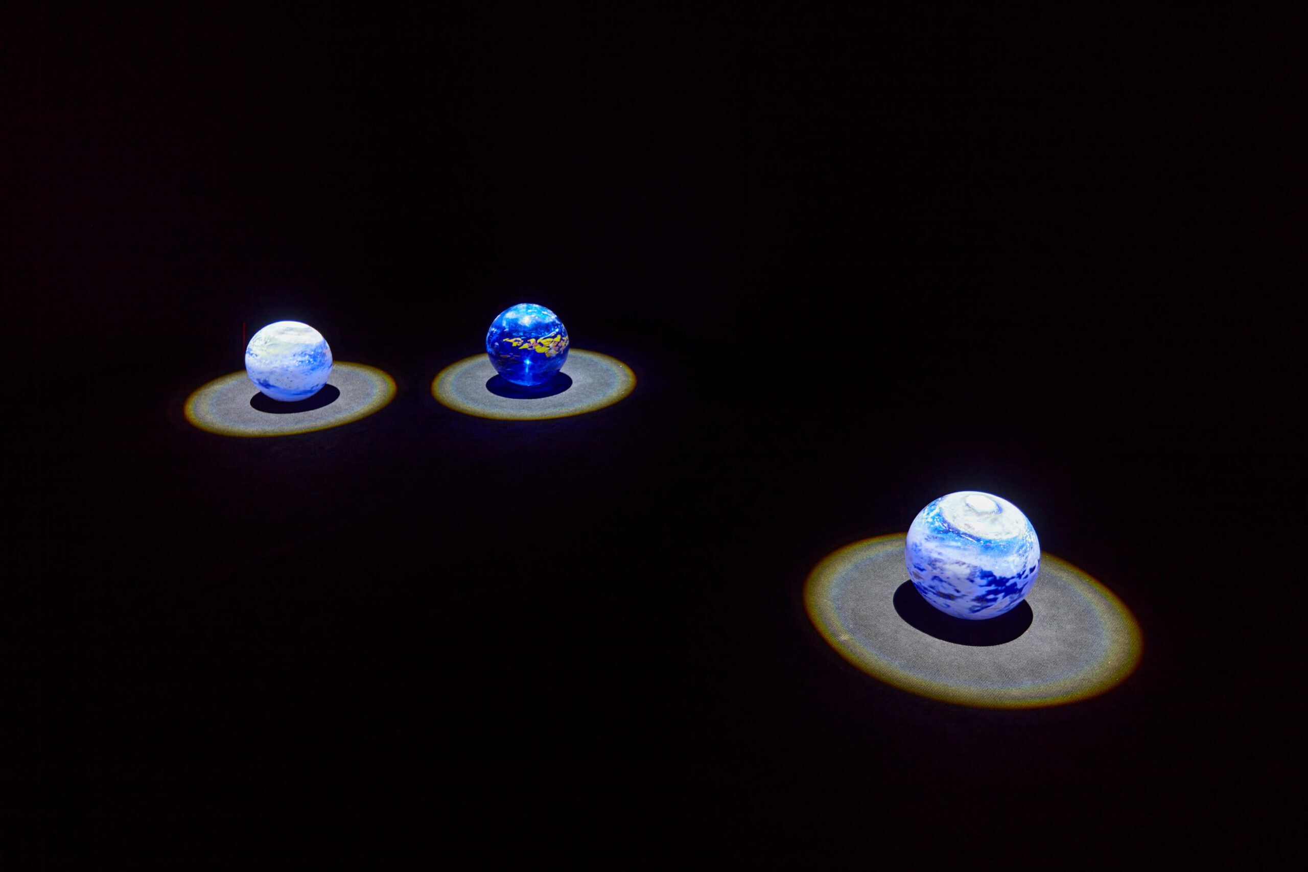 A digital animation made from images of a series of ten different glass spheres can be viewed as a video projection in space number 6 on the ground floor.