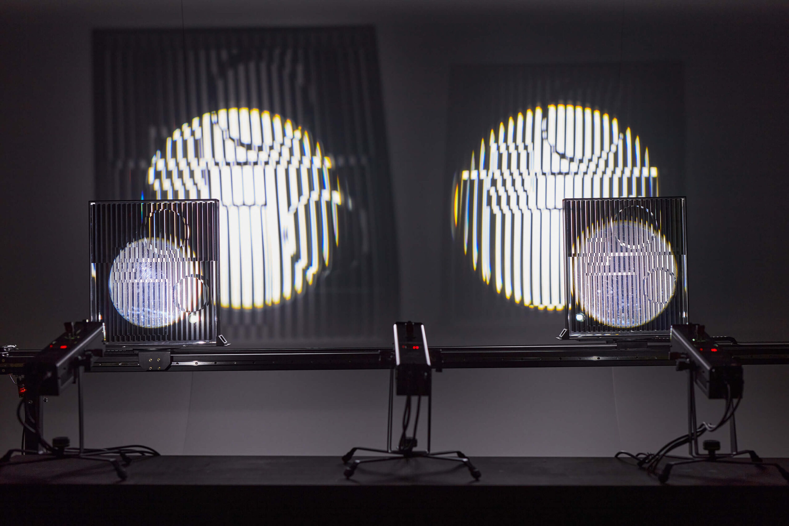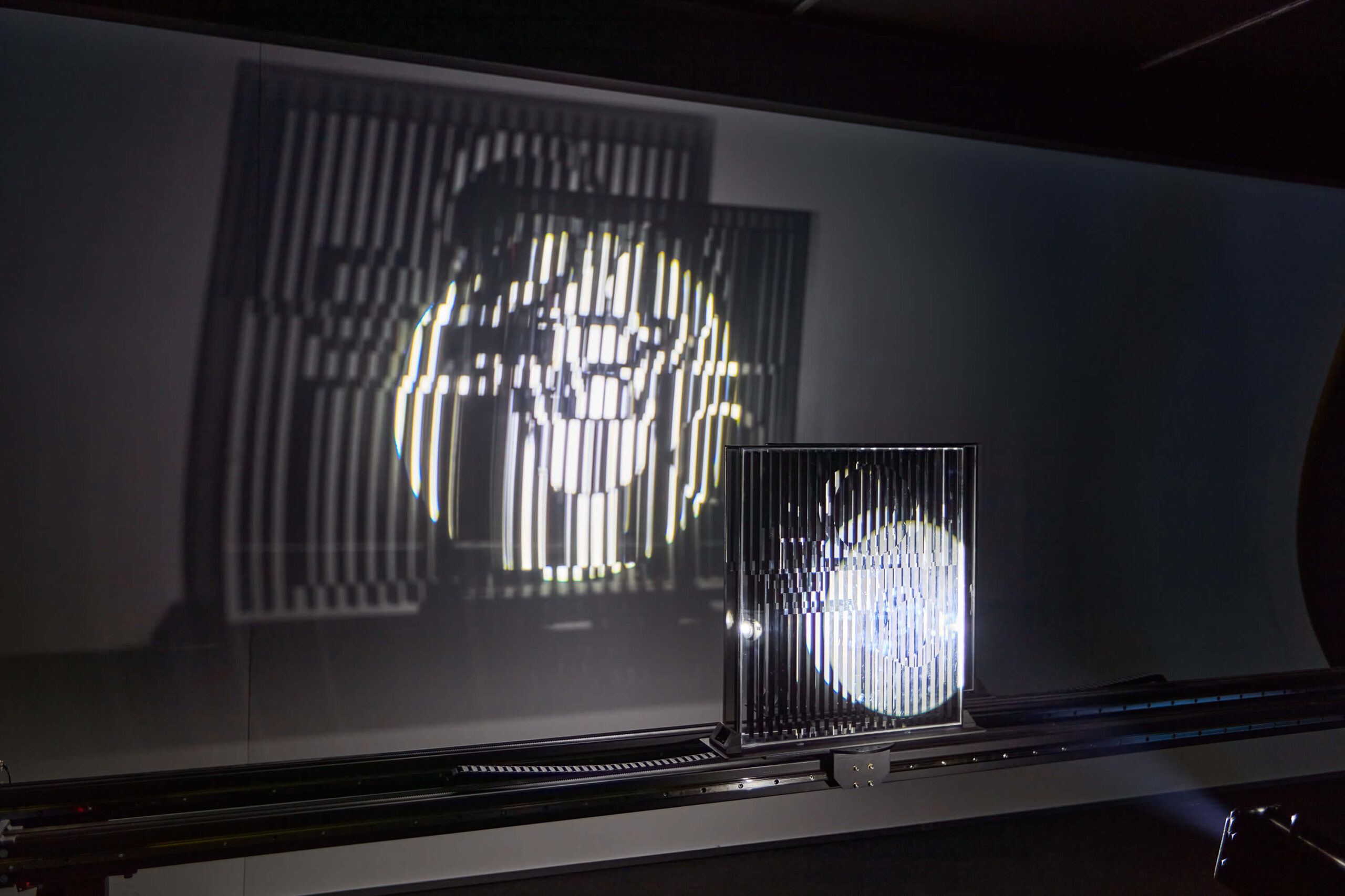 The Hungarian-born Victor Vasarely, who completed his life’s work in France, was a key figure of abstract geometric art, which became an international movement known as kineticism. The distinctive style of his work exploded into the public consciousness in the mid-1960s as op-art, setting off a hugely popular fashion wave. His grid-like compositions based on the contrast between black and white created the illusion of out-of-plane movement, bulging or sudden swelling by shifting or bending lines. Vasarely used the absolute contrast between light and dark to create the illusion of pictorial processes in time and space. His optical experiments led him to connect the plane of his compositions closed on four sides with the impression of motion. He first began to apply his method on works constructed from acrylic sheets or glass and organised from the stereoscopic view of various layers shifted on top of each other. These ‘deep kinetic compositions’, first exhibited in 1955, were coupled with a real experience of space. By exploiting the physical laws of refraction and reflection he created spatial collages in a continuous state of transformation through the interference of two identical abstract patterns projected on top of each other and brought to life by the movement of the viewer. The artist’s objects shown here are the vehicles of a creative vision of the three-dimensional possibilities of flat surfaces modulated by light.